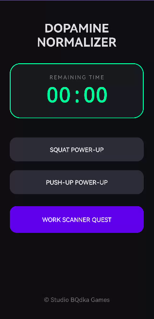 - Work Scanner Quest: Show your work (notebook, monitor, book) to the camera. The AI will verify if it's actual work or just a blank screen.